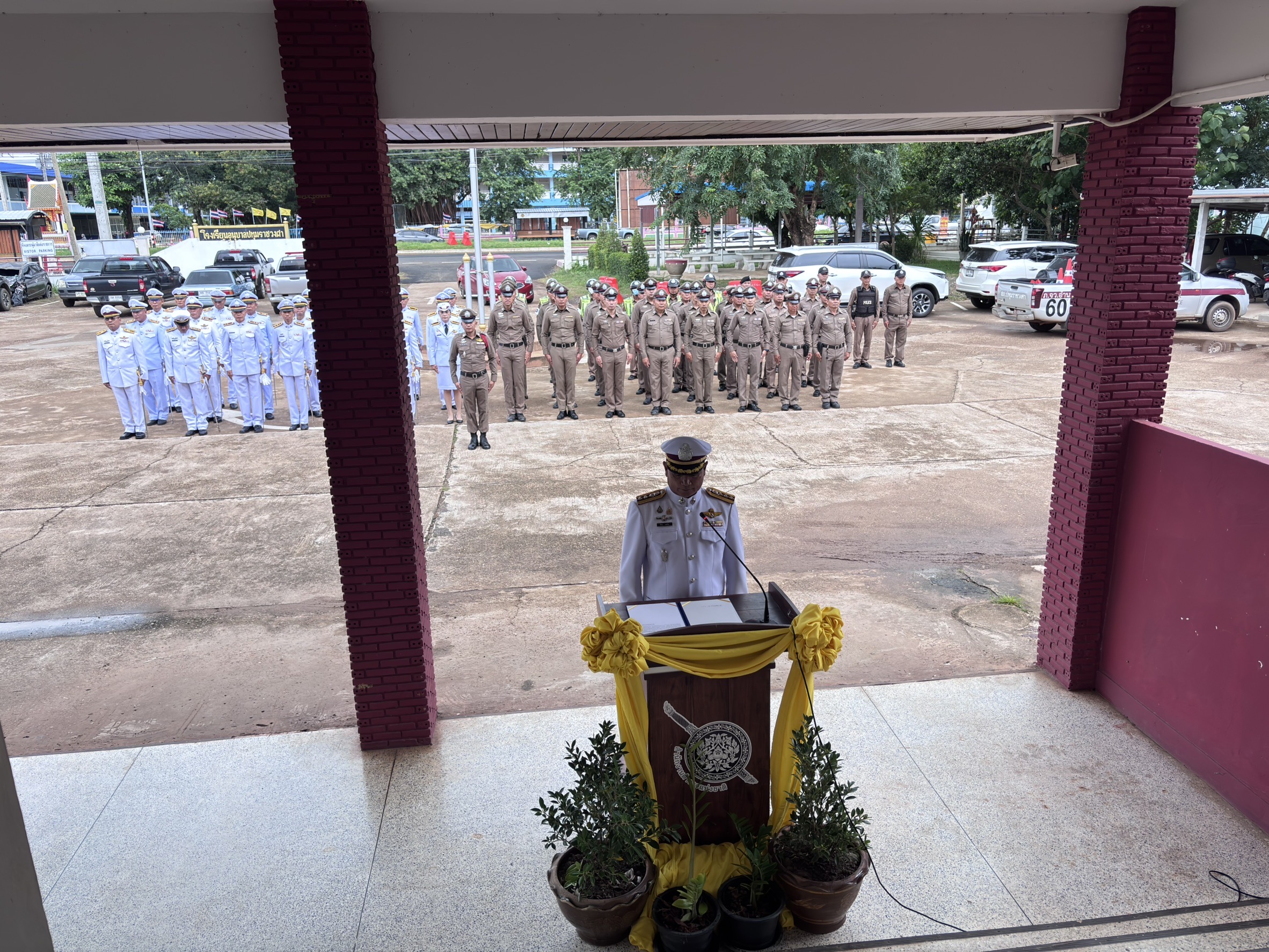 วันที่ ๒๒ ก.ค.๒๕๖๘ เวลา ๐๘.๓๐ น. พ.ต.อ.นิติธร แสงย้อย ผกก.สภ.ปทุมราชวงศา พร้อมด้วยข้าราชการตำรวจในสังกัด ทำพิธีถวายสัตย์ปฏิญาณเพื่อเป็นข้าราชการตำรวจที่ดีและพลังของแผ่นดิน และลงนามถวายพระพรเนื่องในโอกาสวันเฉลิมพระชนมพรรษา ๒๘ กรกฎาคม ๒๕๖๘ ณ ที่ทำการ สภ.ปทุมราชวงศา อ.ปทุมราชวงศา จว.อำนาจเจริญ